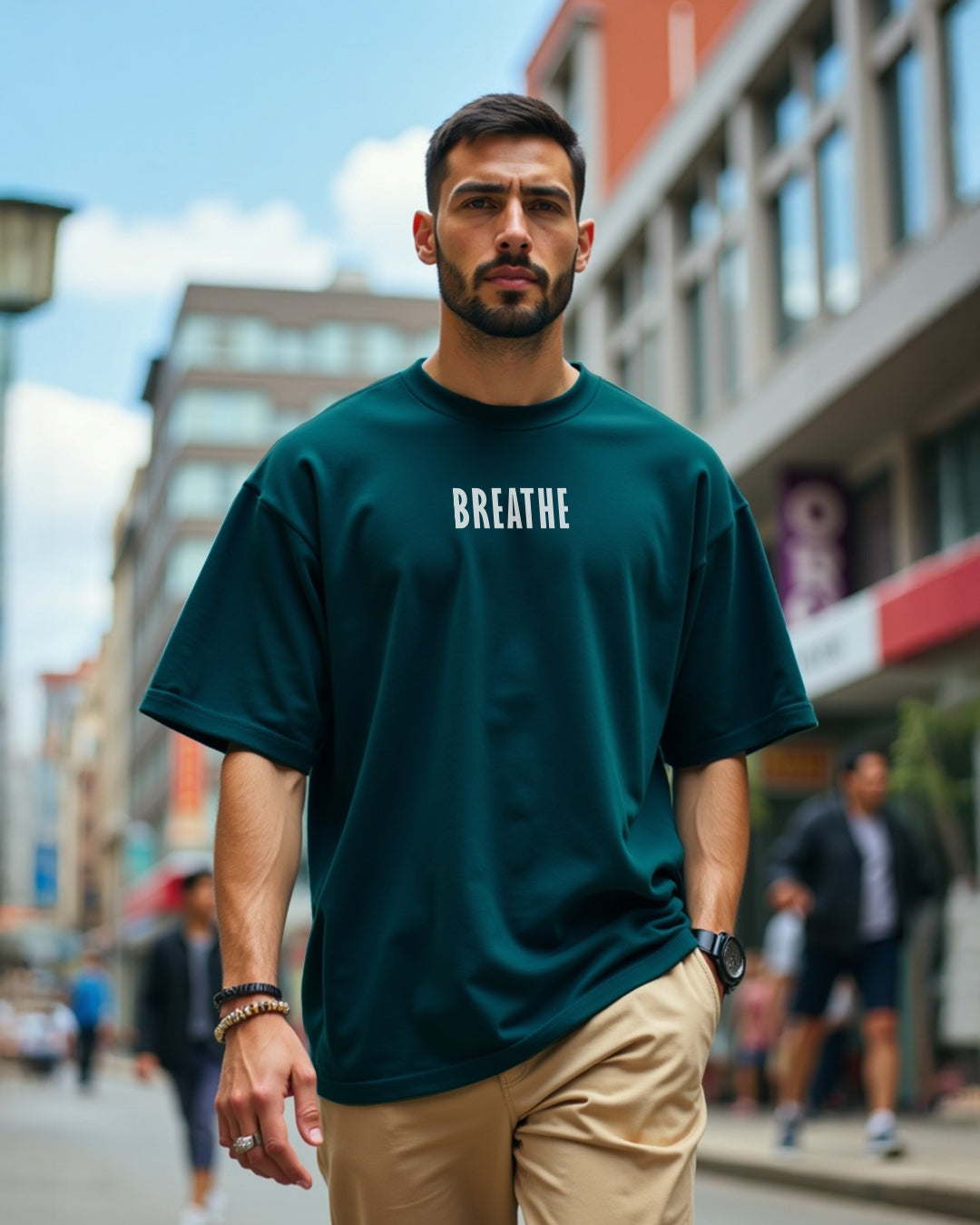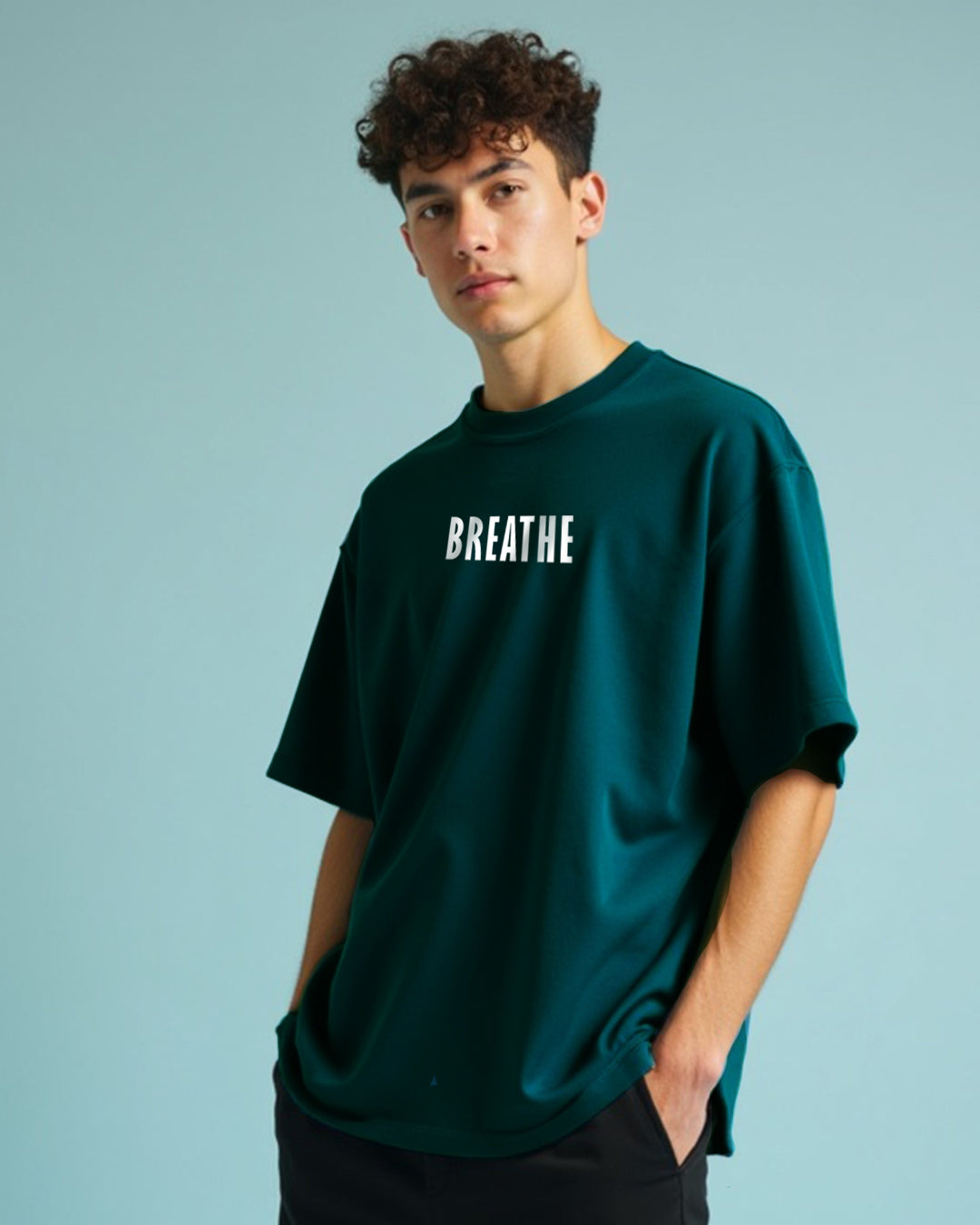 Breathe Teal Blue Oversized Men's Tshirt