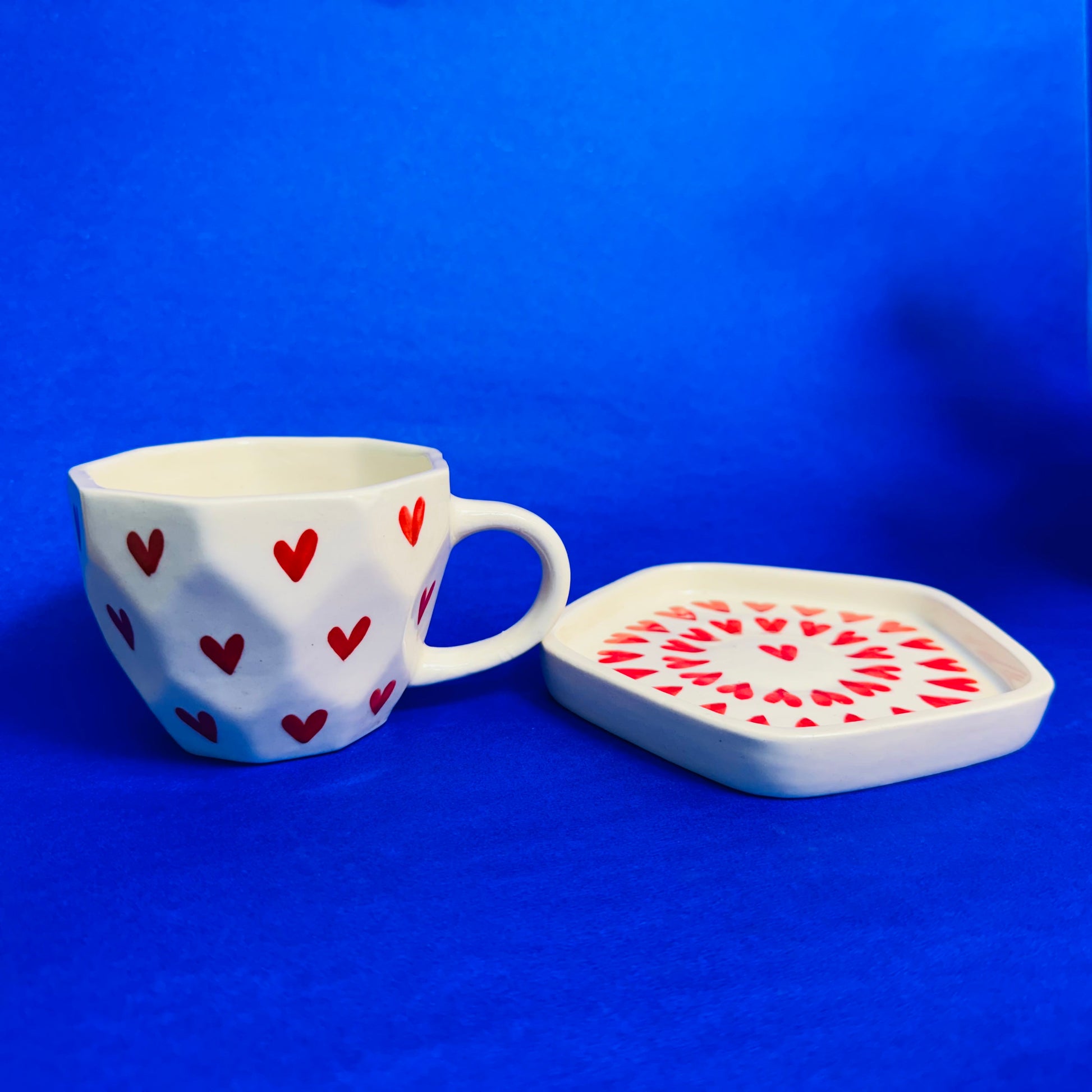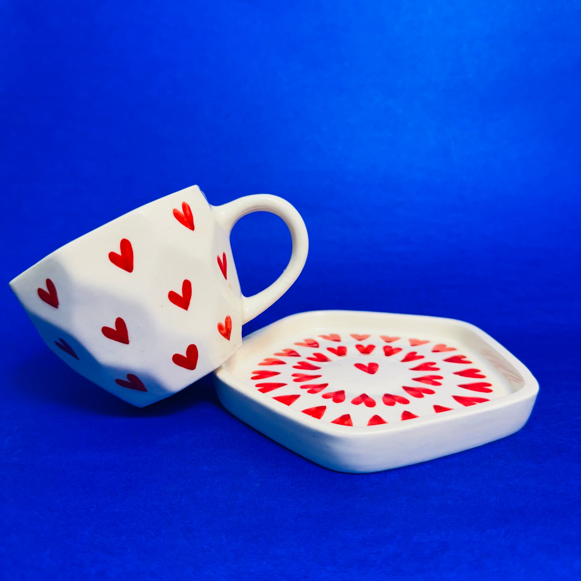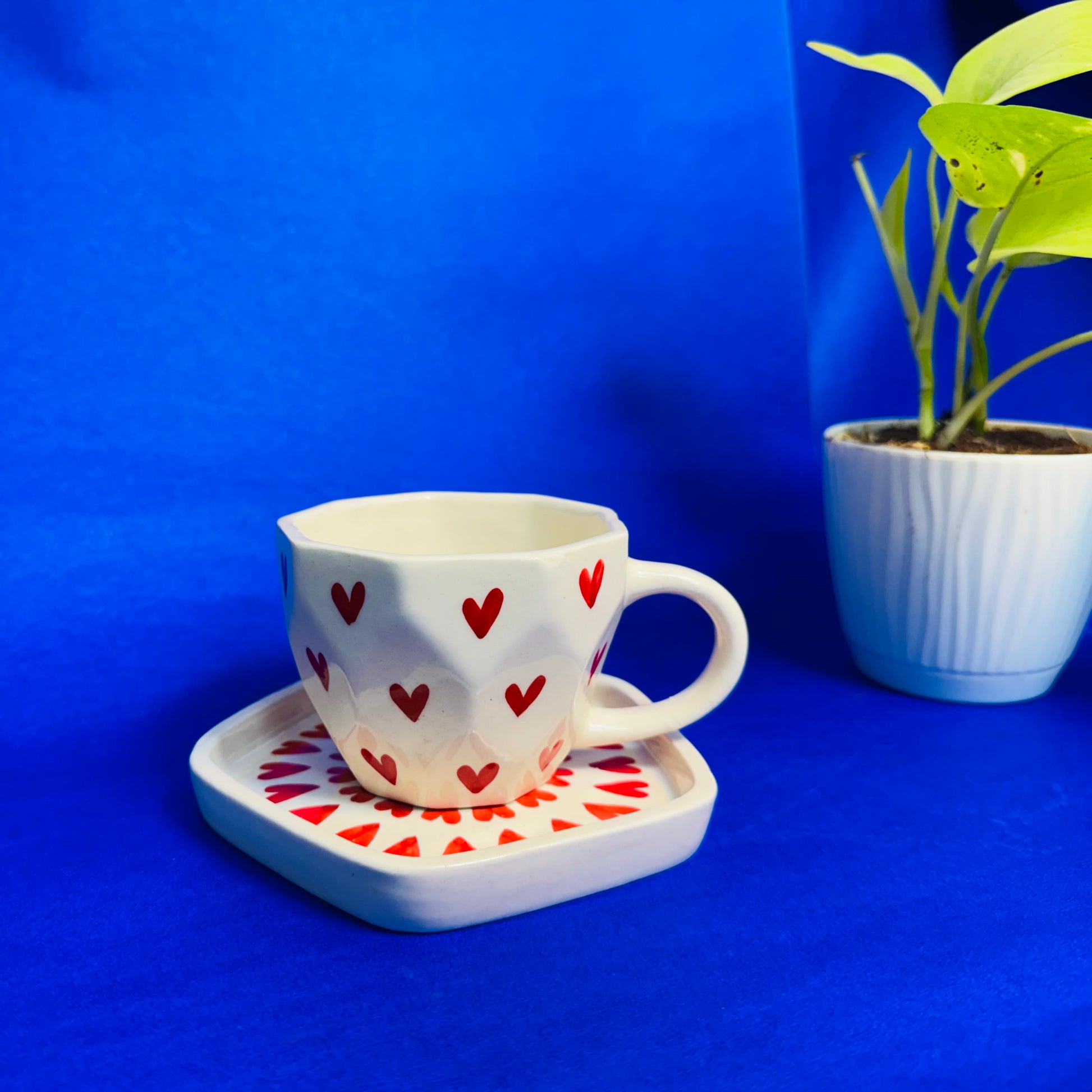 Add a little love to your coffee routine with our Love Brew Heart Cup & Saucer! Featuring a charming red heart pattern, this Pinterest-worthy ceramic cup is perfect for romantic mornings or self-care evenings. Handmade with a unique wavy shape and a matching saucer, it’s microwave-safe and stylishly aesthetic. Whether you're sipping chai or cappuccino, this cup is here to serve love in every sip! 💕